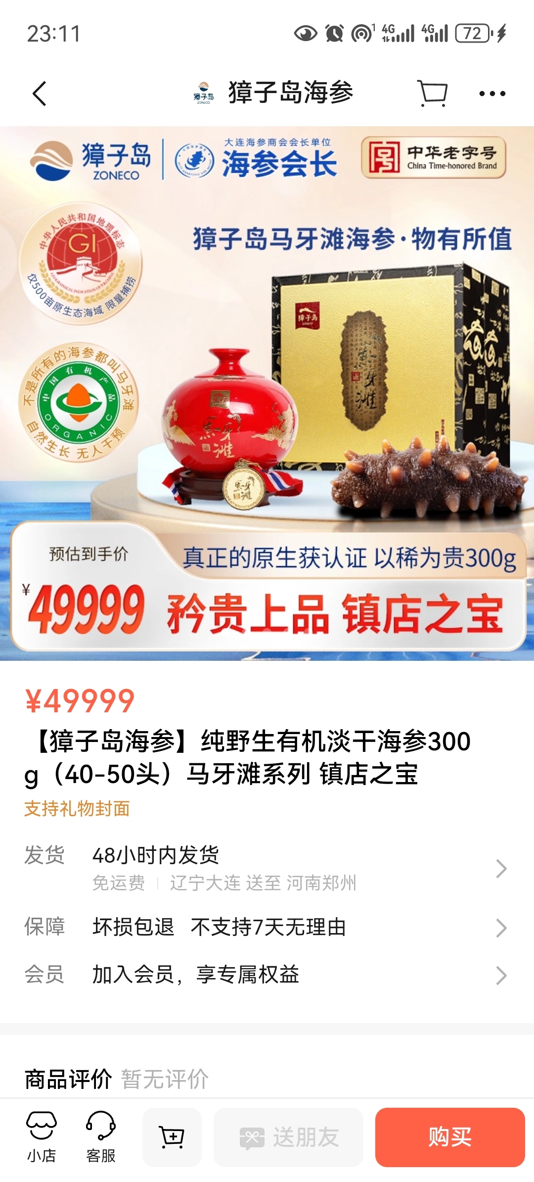 茅台一斤,1499,海参6量49999,这差距太大了。