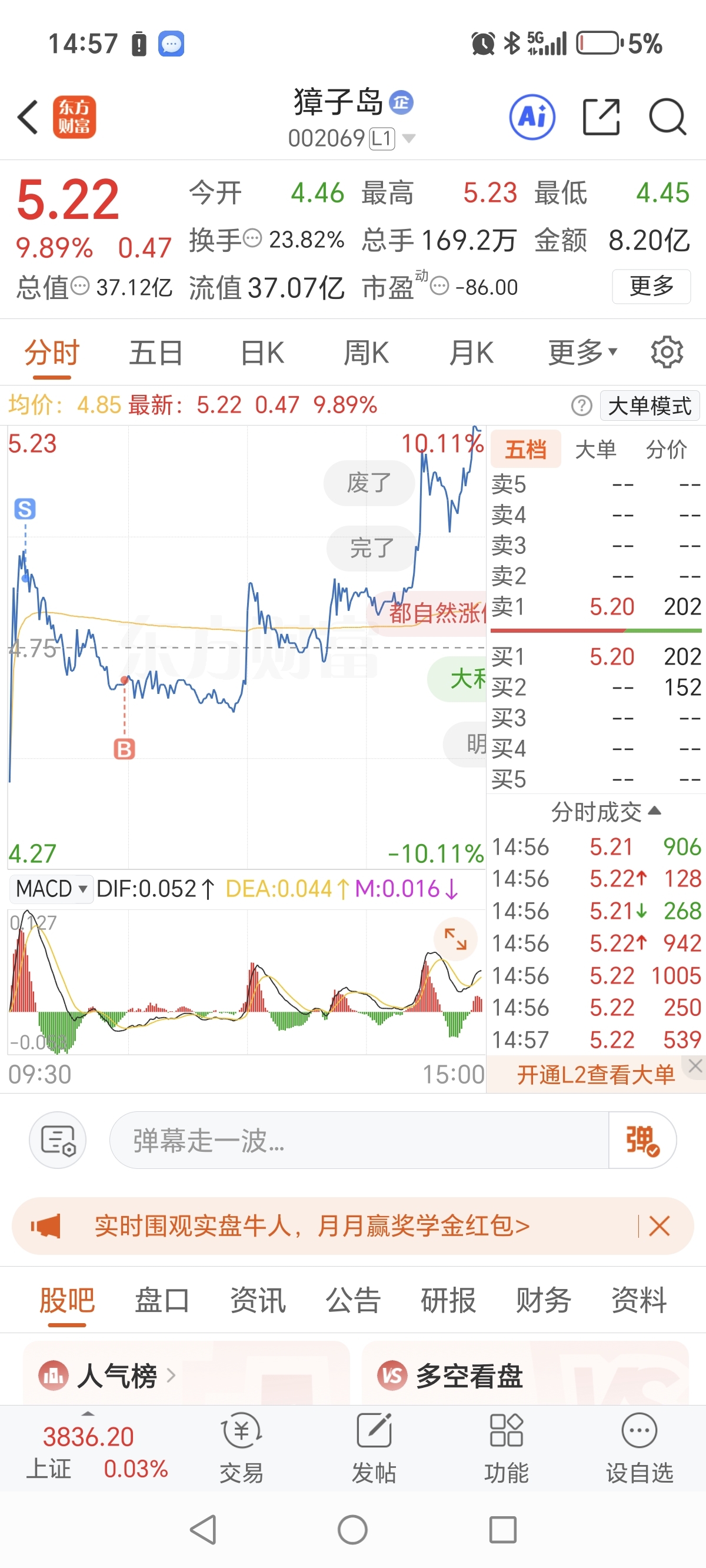 $獐子岛(SZ002069)$ 2大业得,我回来了