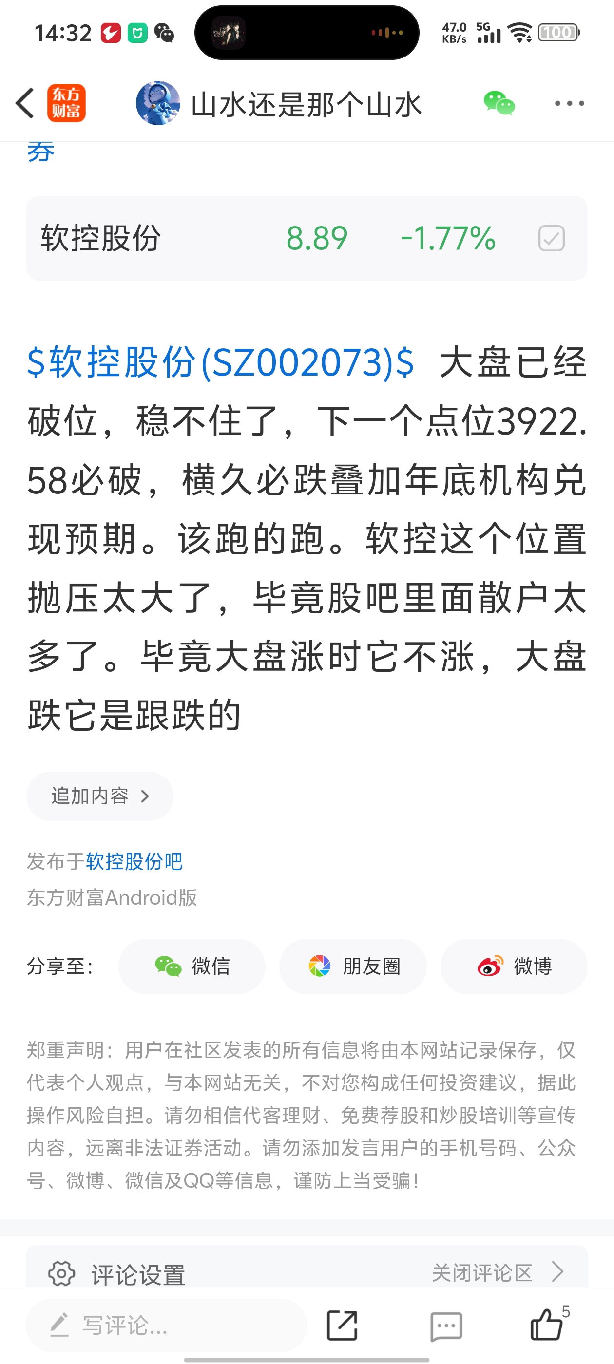 $软控股份(SZ002073)$ 说了要破的肯定要破的。我的医药股还是稳的一批,年底流感来袭,前几天就发文提醒了。这两个扎堆在医药股里了。软控只能提醒,支撑位有效就继续持有,可能跟随软件服务板块。低调就好。不要太高调反而不好。