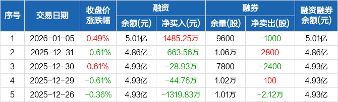 软控股份:融资净买入1485.25万元,融资余额5.01亿元(01-05)
