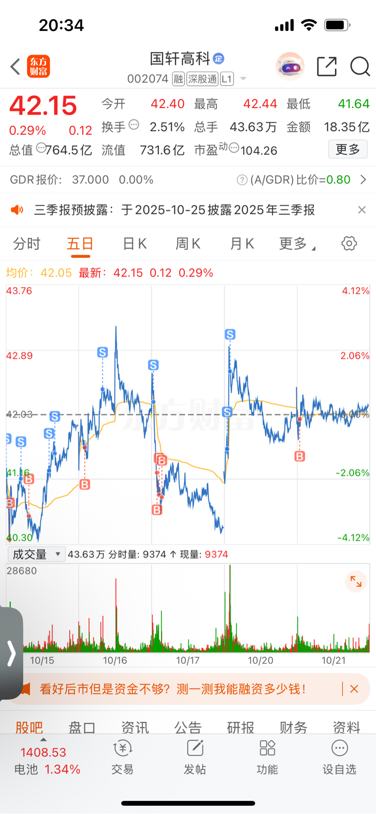 $国轩高科(SZ002074)$ 早上买的这一笔没机会走,怕明天没上冲的动力开盘就往下掉。3成仓,26成本,不太担心