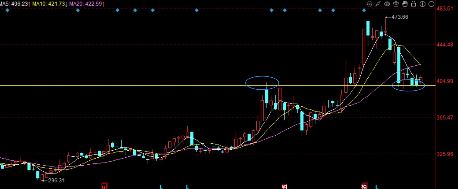 技术面:经过一波调整之后,股价已经在400的整数关口位置站稳了,而这个位置也是前一波拉升的高点,回调不破前高,这是趋势持续的表现,那么接下来会有一波反弹,而且最近芯片板块最近诸多利好消息,所以板块活跃度很高,有板块的支持下,北方华创反弹的概率更大,策略上,就在400附近,可以吸筹拿货,博弈反弹,空间在8%左右。
