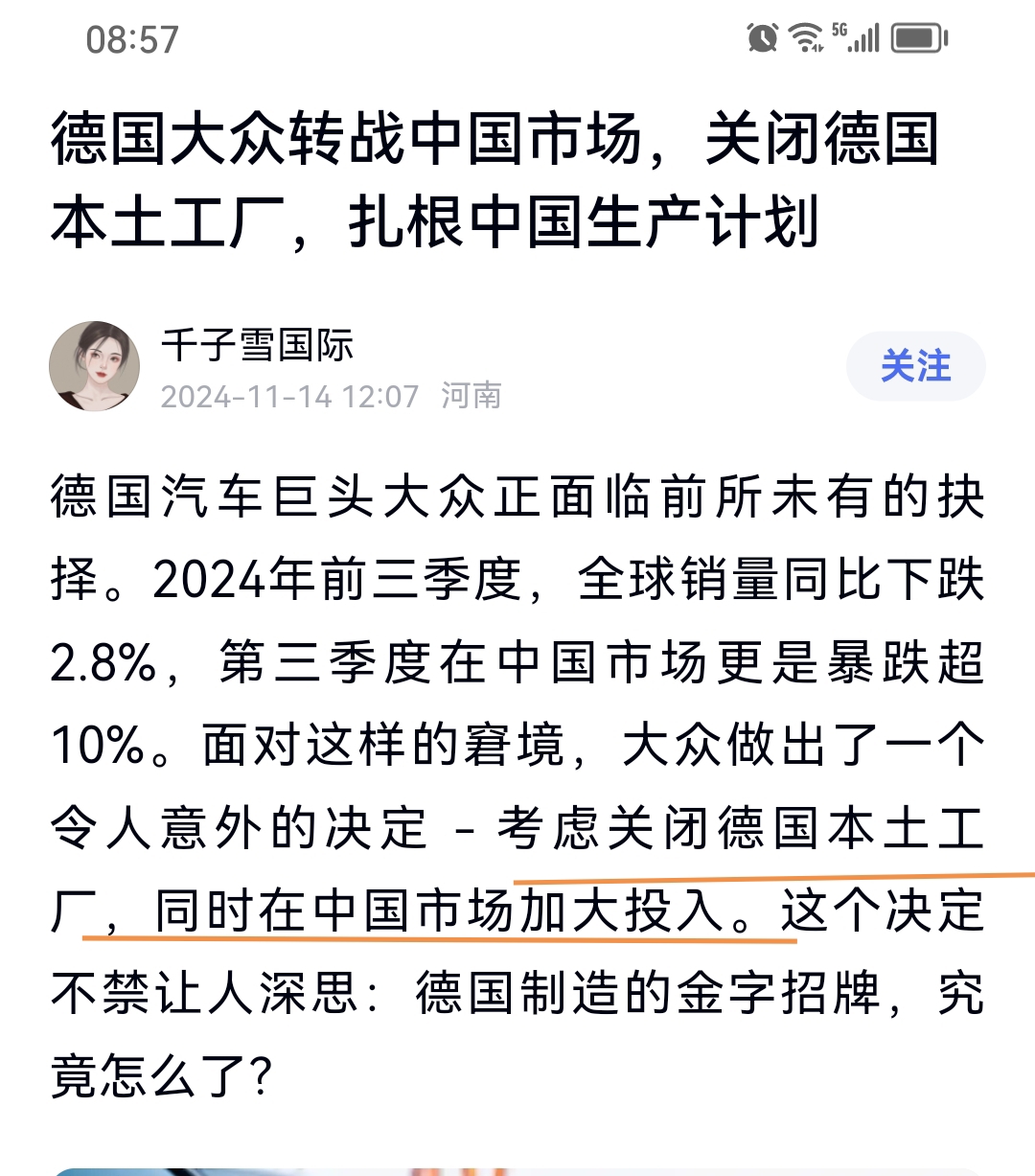 闻泰科技事件惊心动魄看来大众汽车壮士断腕:关闭德国汽车本土制造,在中国市场加大投