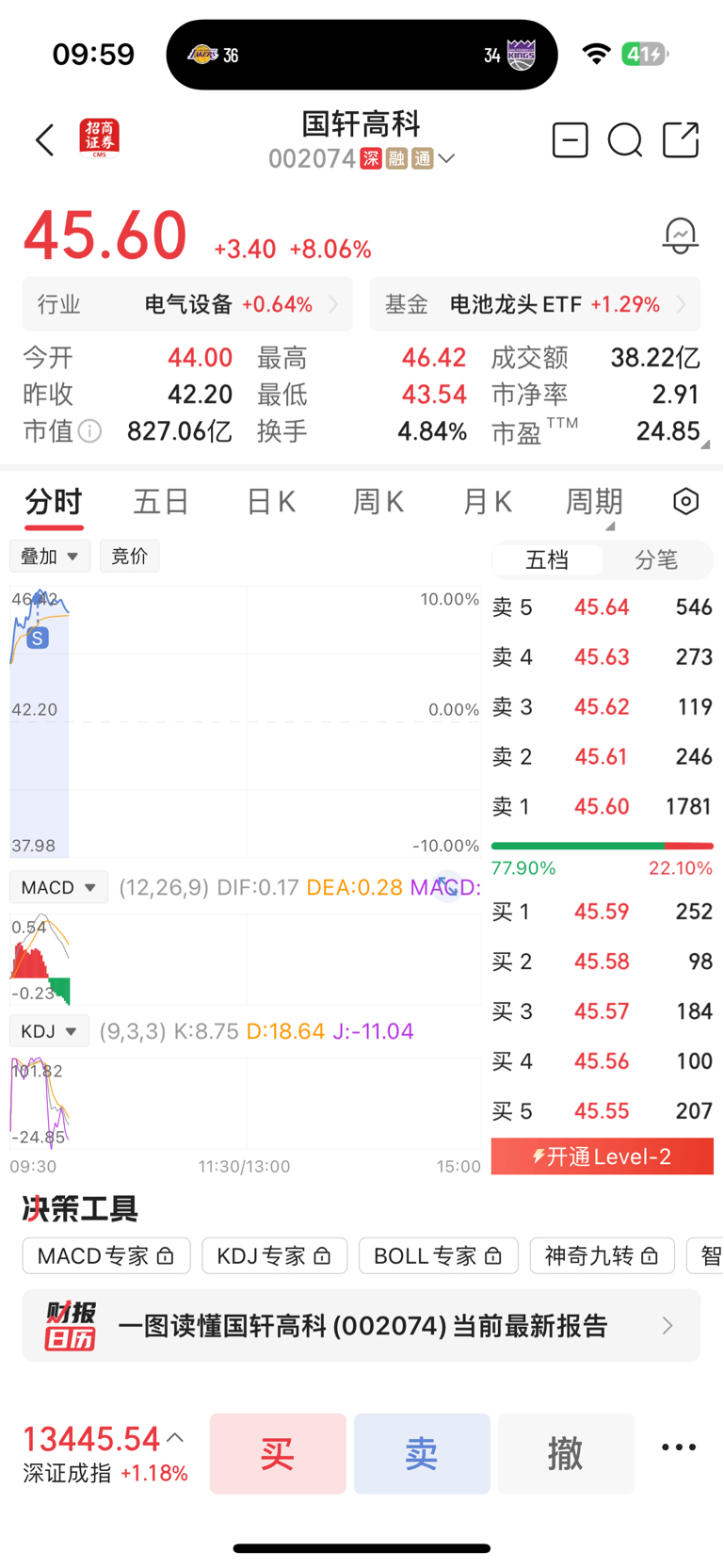 $国轩高科(SZ002074)$ 出了。祝留下的发财