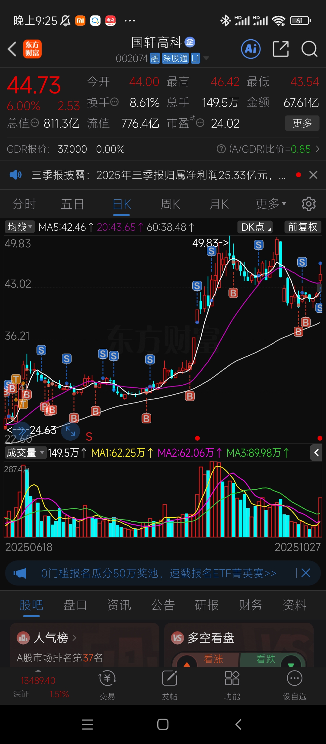 国轩不要贪,基本面已经全面改善,不会低于40了,但是也不会暴涨,因为员工持股计划