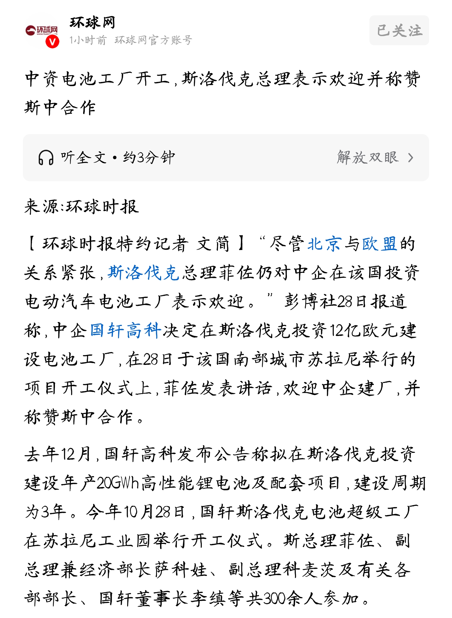 $国轩高科(SZ002074)$ 还在炒密立根工厂的冷饭,家里通网了没?斯洛伐克工厂,从在欧洲的地理位置和政治经济稳定性来讲,都是更优选择!
