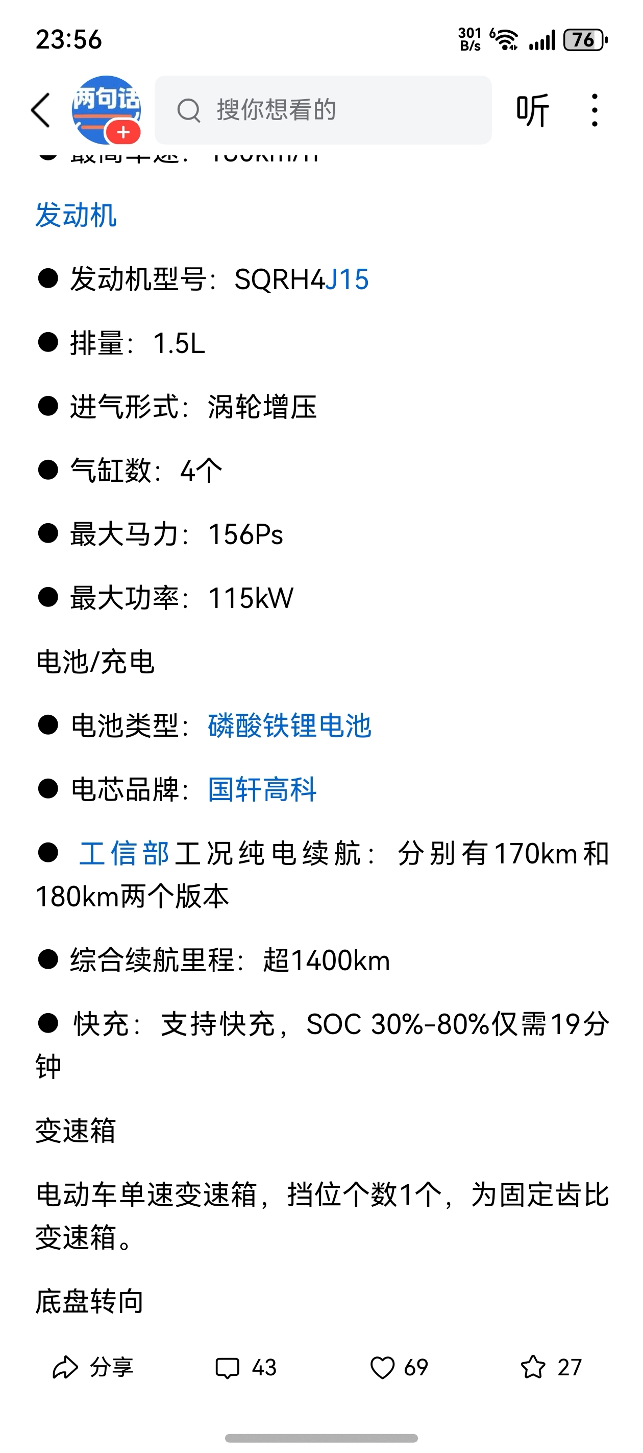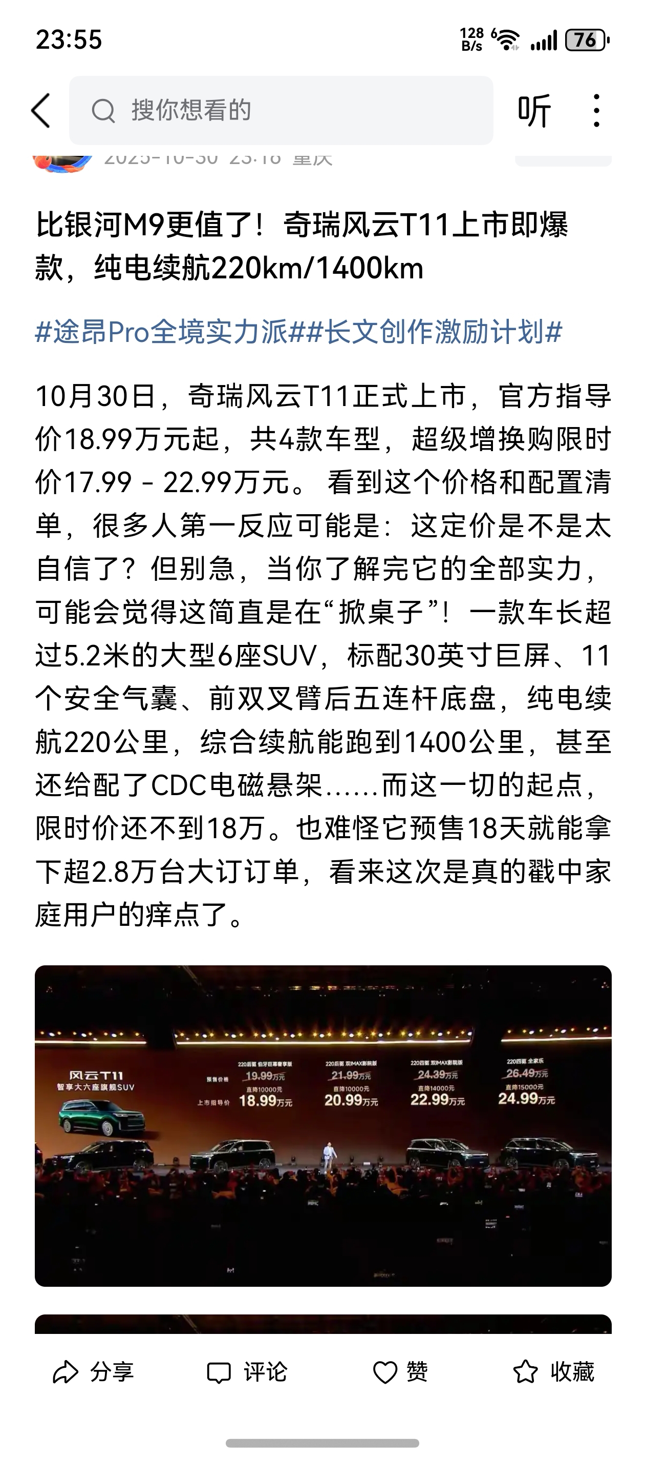 搭载国轩高科电池的奇瑞风云T11已经大定超过28000台