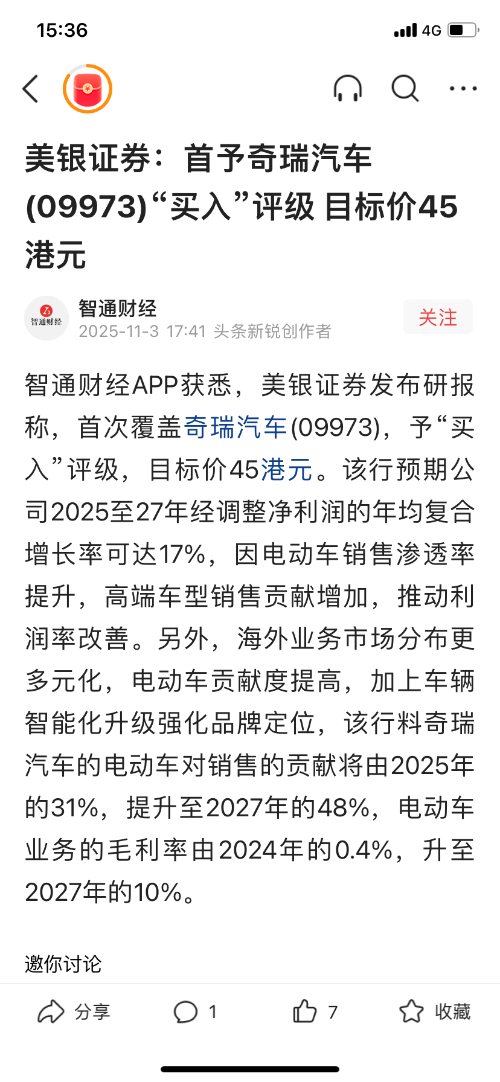 预测奇瑞汽车大涨!