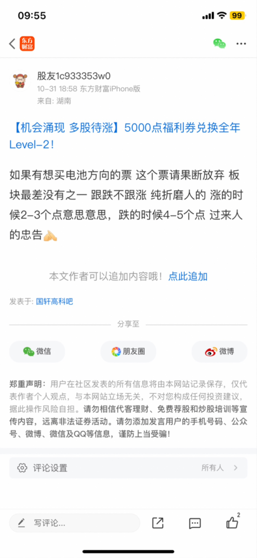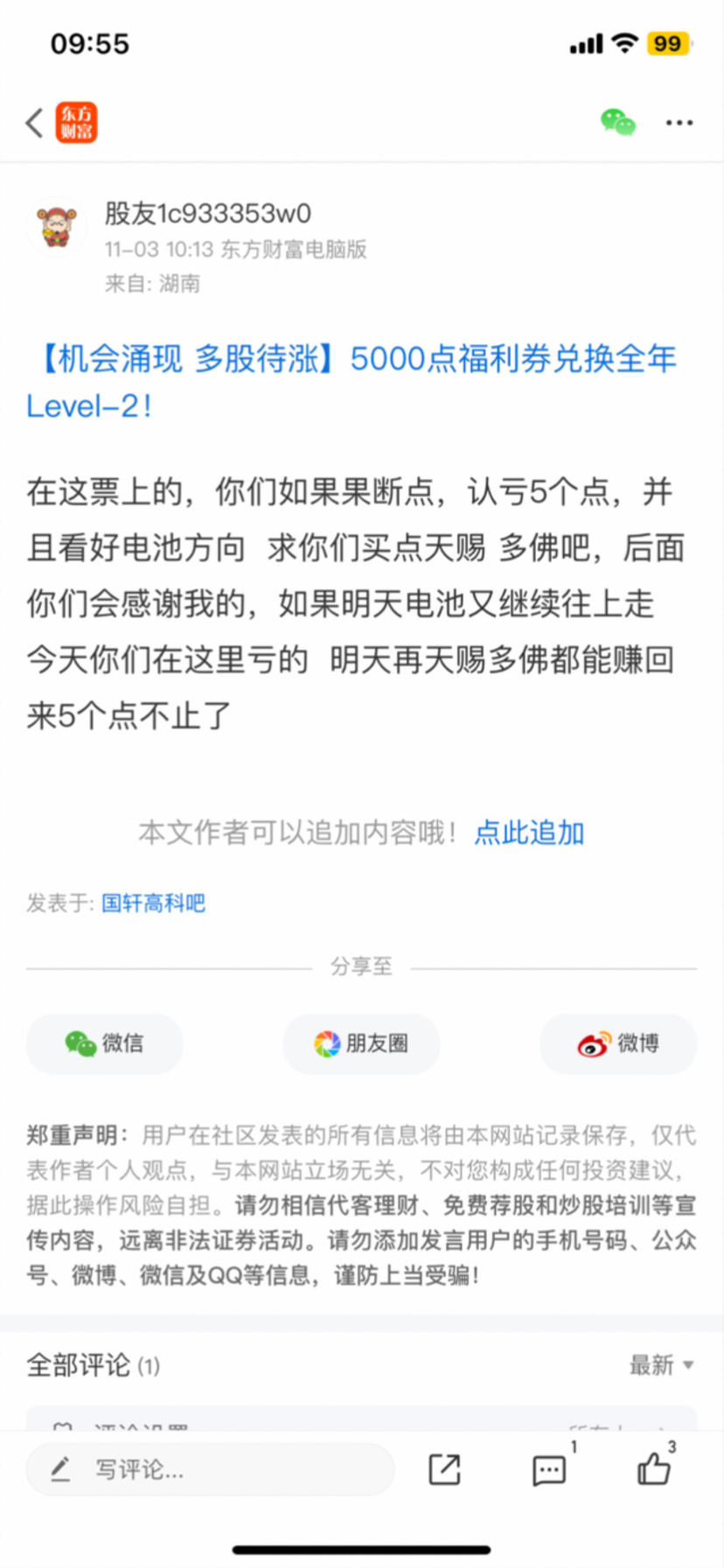 温馨提示: 1.根据《证券法》规定,禁止编造、传播虚假信息或者误导性信息,扰乱证券市场;2.用户在本社区发表的所有资料、言论等仅代表个人观点,与本网站立场无关,不对您构成任何投资建议。用户应基于自己的独立判断,自行决定证券投资并承担相应风险。《东方财富社区管理规定》