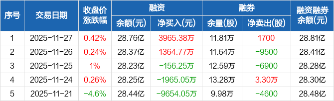 国轩高科:融资净买入3965.38万元,融资余额28.76亿元(11-27)