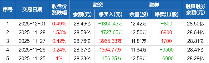 国轩高科:融资净偿还1350.43万元,融资余额28.46亿元(12-01)