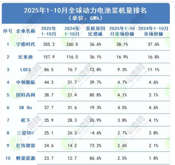 前10月全球动力电池装车量TOP10,国轩高科排名第5啦!