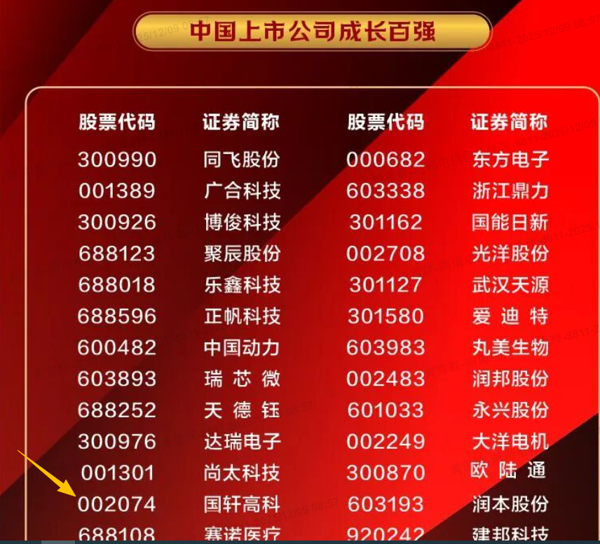 中国上市公司成长百强!