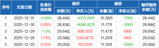 国轩高科:融资净偿还4315.69万元,融资余额28.4亿元(12-31)