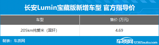 长安Lumin宝藏版新增车型上市,搭载国轩高科电池