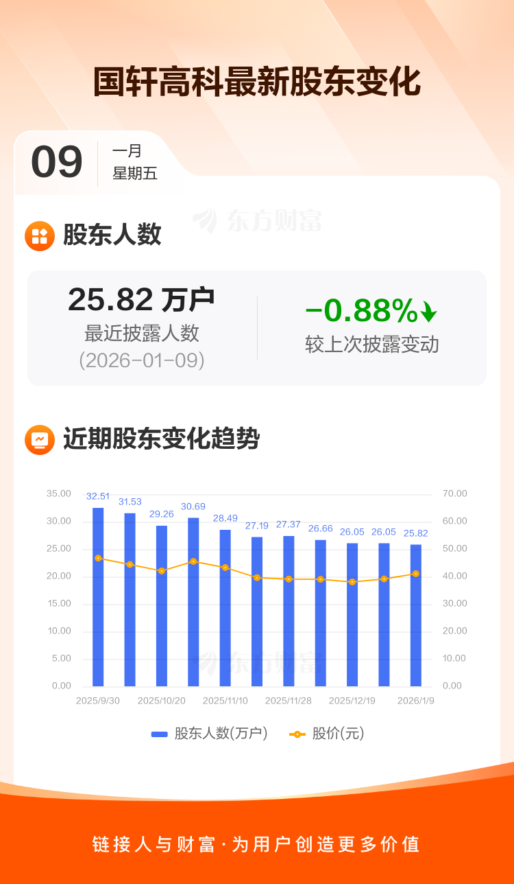 国轩高科:截至1月9日最新股东户数25.82万户,较上期减少0.88%