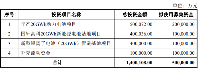 国轩高科拟定增募资不超过50亿,用于年产20GWh动力电池项目等