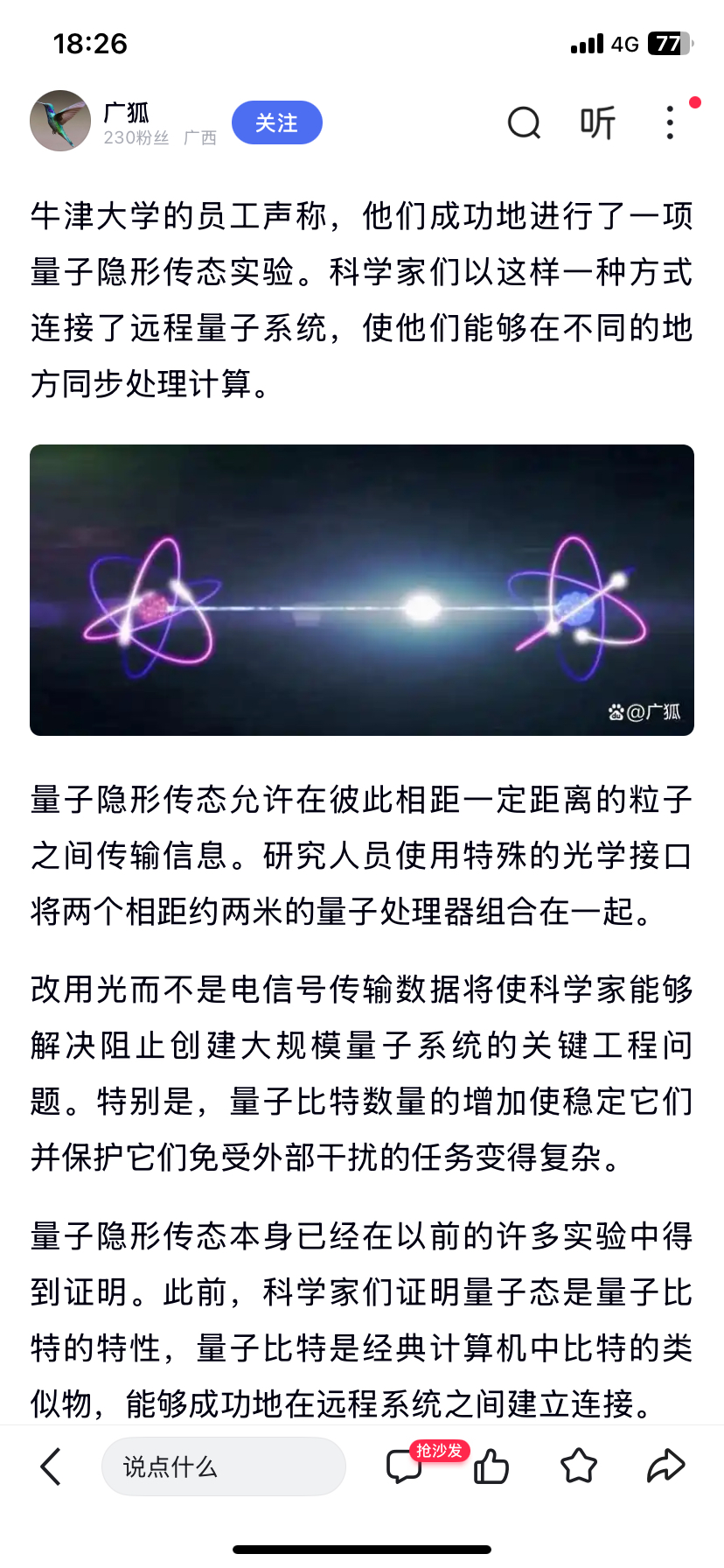 跟国外还是一段差距的牛津大学2月份就发布量子隐形传态技术了