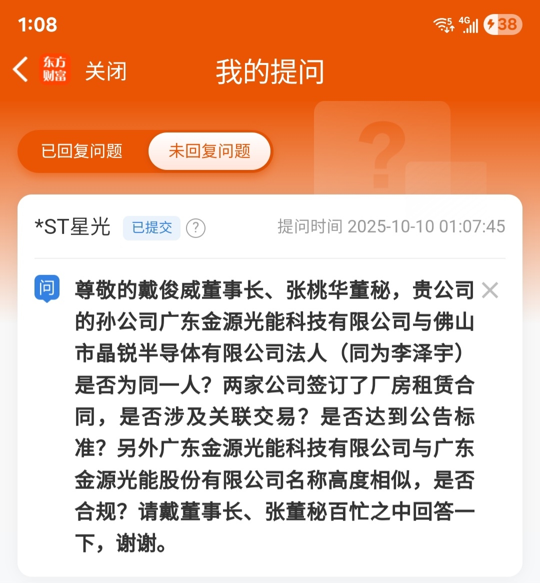 $*ST星光(SZ002076)$ $ST华西(SZ002630)$ $*ST亚振(SH603389)$ 尊敬的戴俊威董事长、张桃华董秘,贵公司的孙公司广东金源光能科技有限公司与佛山市晶锐半导体有限公司法人(同为李泽宇)是否为同一人?两家公司签订了厂房租赁合同,是否涉及关联交易?是否达到公告标准?