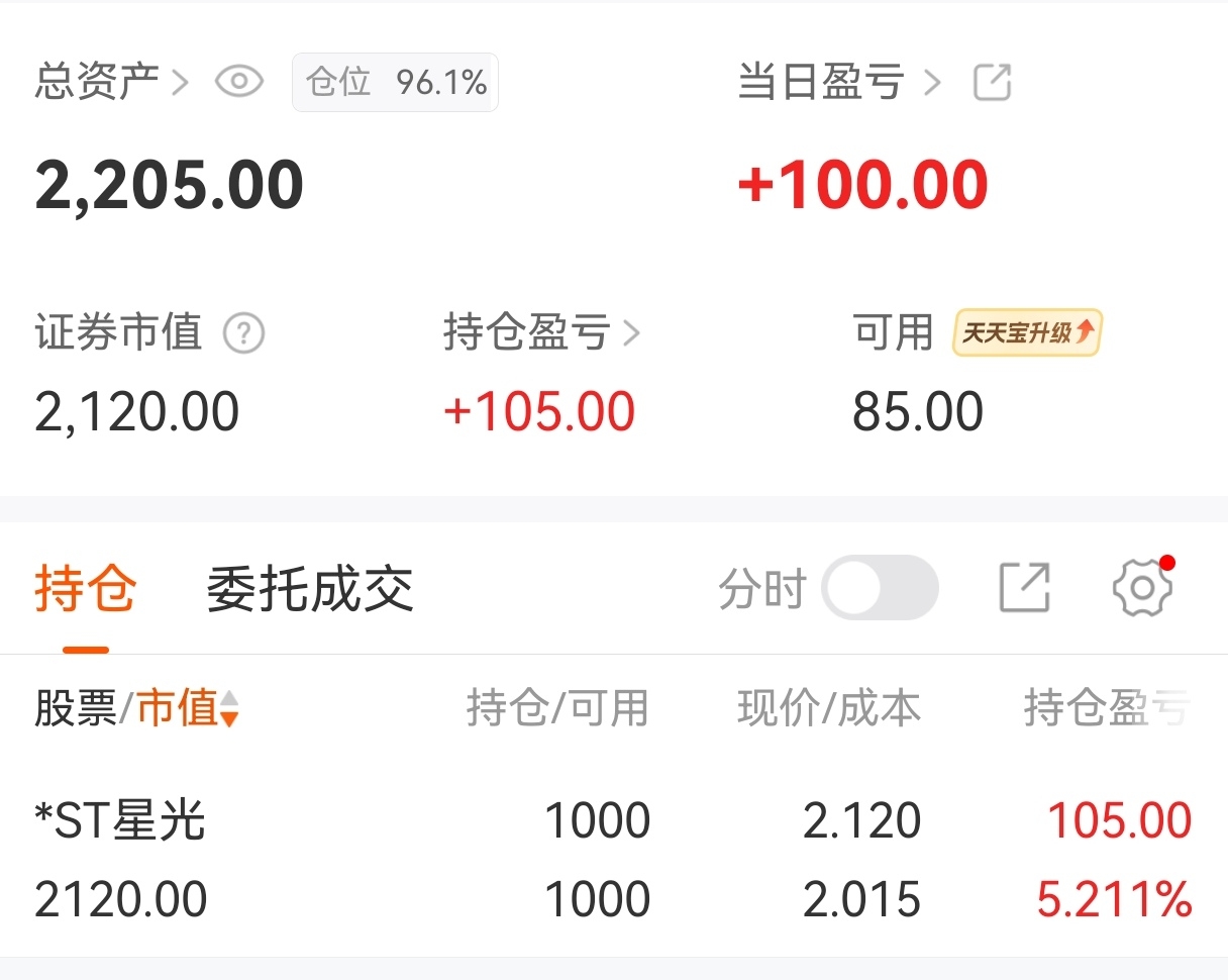 $*ST星光(SZ002076)$ 全仓等翻倍
