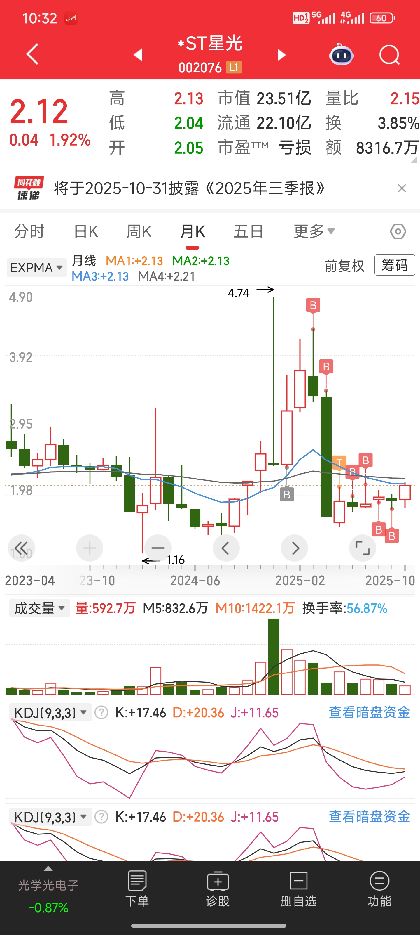 $*ST星光(SZ002076)$ 一路跌一路补,1.86补少了,快回1.86我再补补。