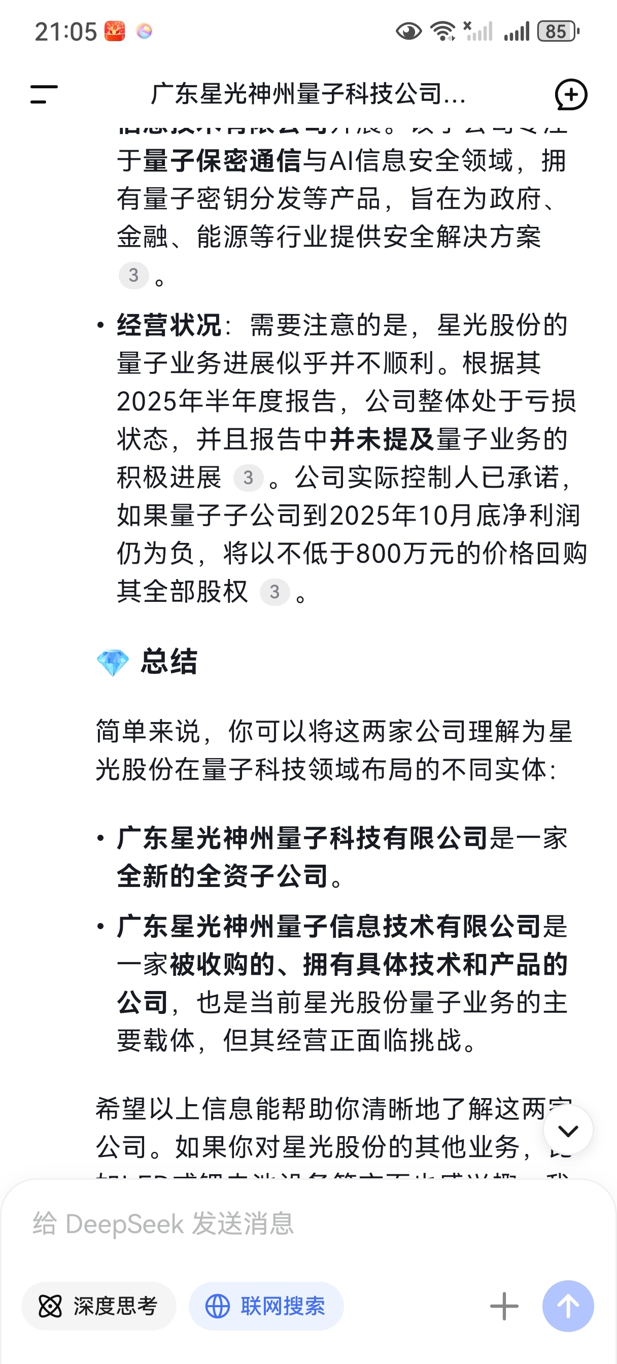 $*ST星光(SZ002076)$ 根据DP,广东星光量子科技有限公司如果在10月底不能盈利 那么大股东800万回购股权,320万+800万=1120万,2025年报盈利没有问题,所以下面就要看营收指标了。