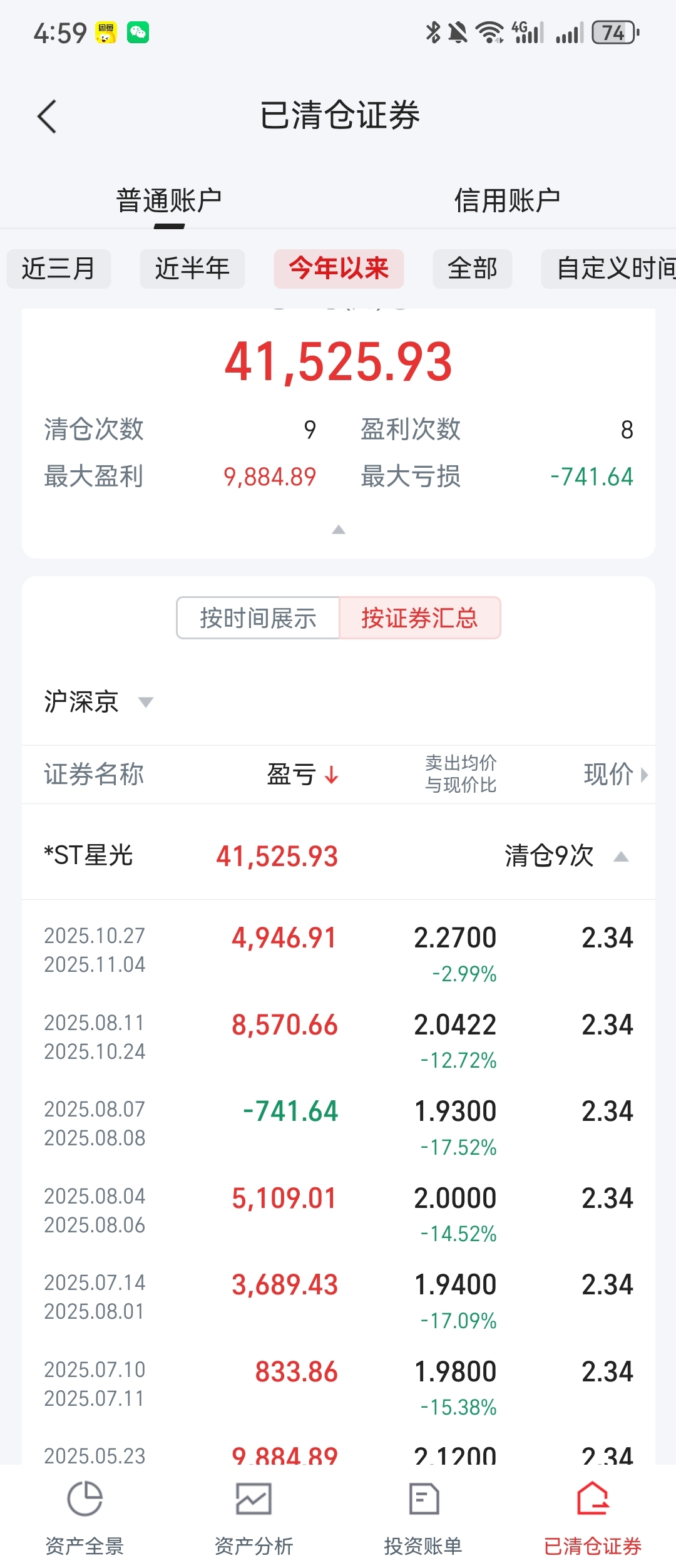$*ST星光(SZ002076)$ 半年交易9次赚了8次这次失算了,哎,希望回来一些