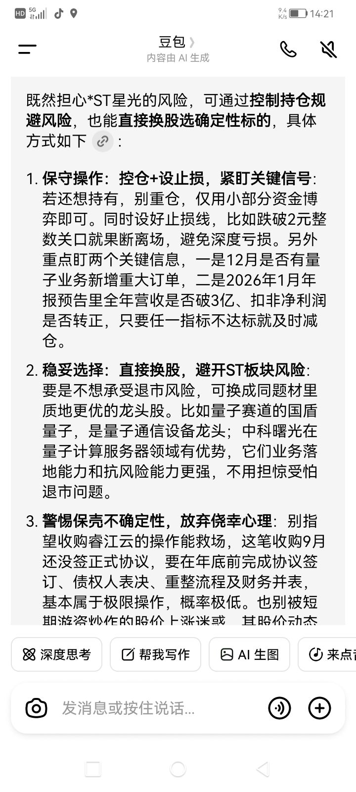 郑重声明:用户在财富号/股吧/博客等社区发表的所有信息(包括但不限于文字、视频、音频、数据及图表)仅代表个人观点,与本网站立场无关,不对您构成任何投资建议,据此操作风险自担。请勿相信代客理财、免费荐股和炒股培训等宣传内容,远离非法证券活动。请勿添加发言用户的手机号码、公众号、微博、微信及QQ等信息,谨防上当受骗!