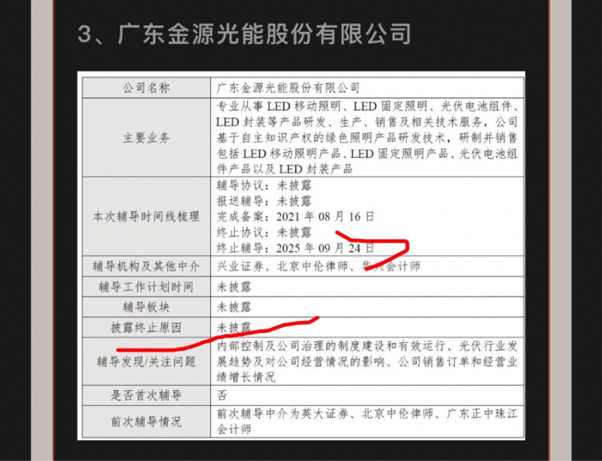 广东金源光能股份有限公司2025年9月终止上市辅导,星光9月租用金源的厂房,广东