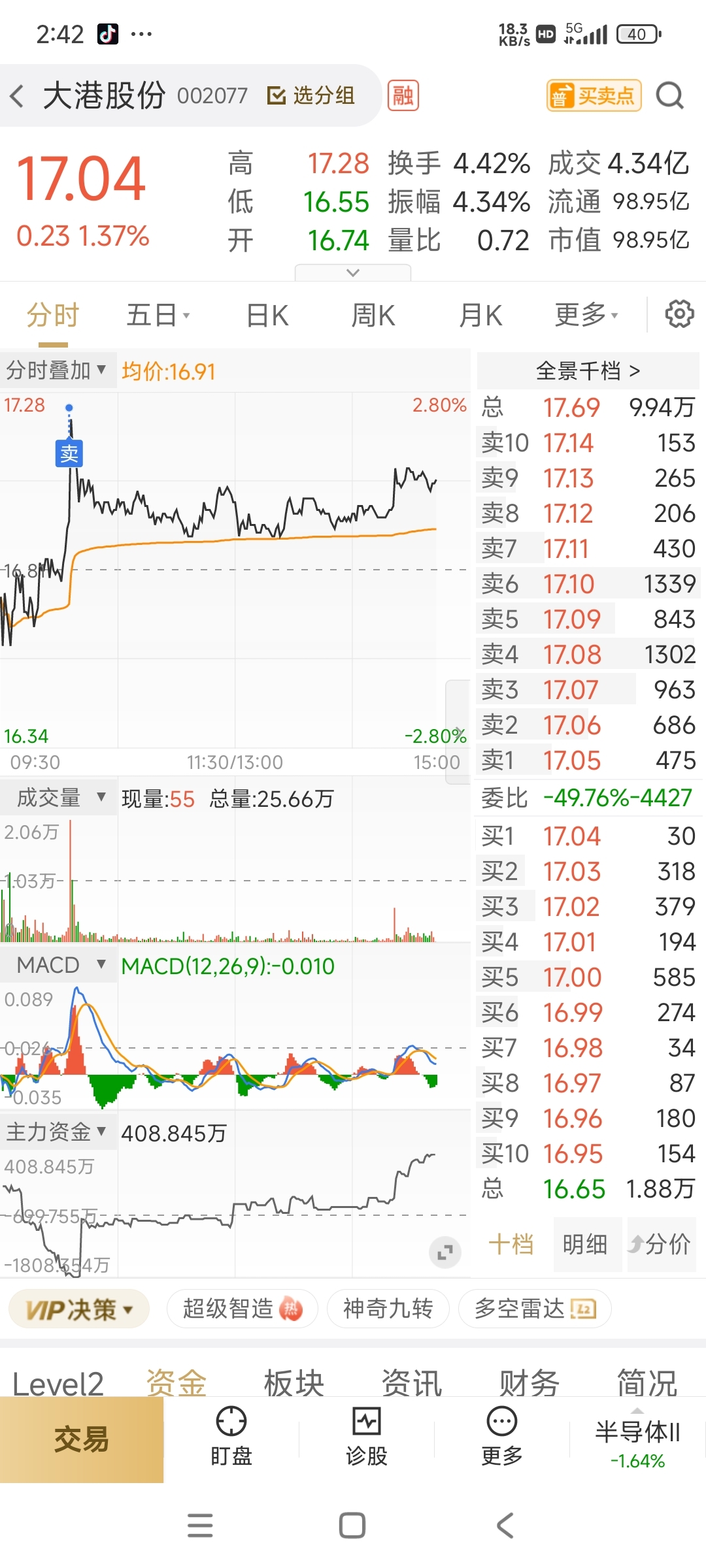 $大港股份(SZ002077)$ 装什么装,快点下来,涨又涨不过大为