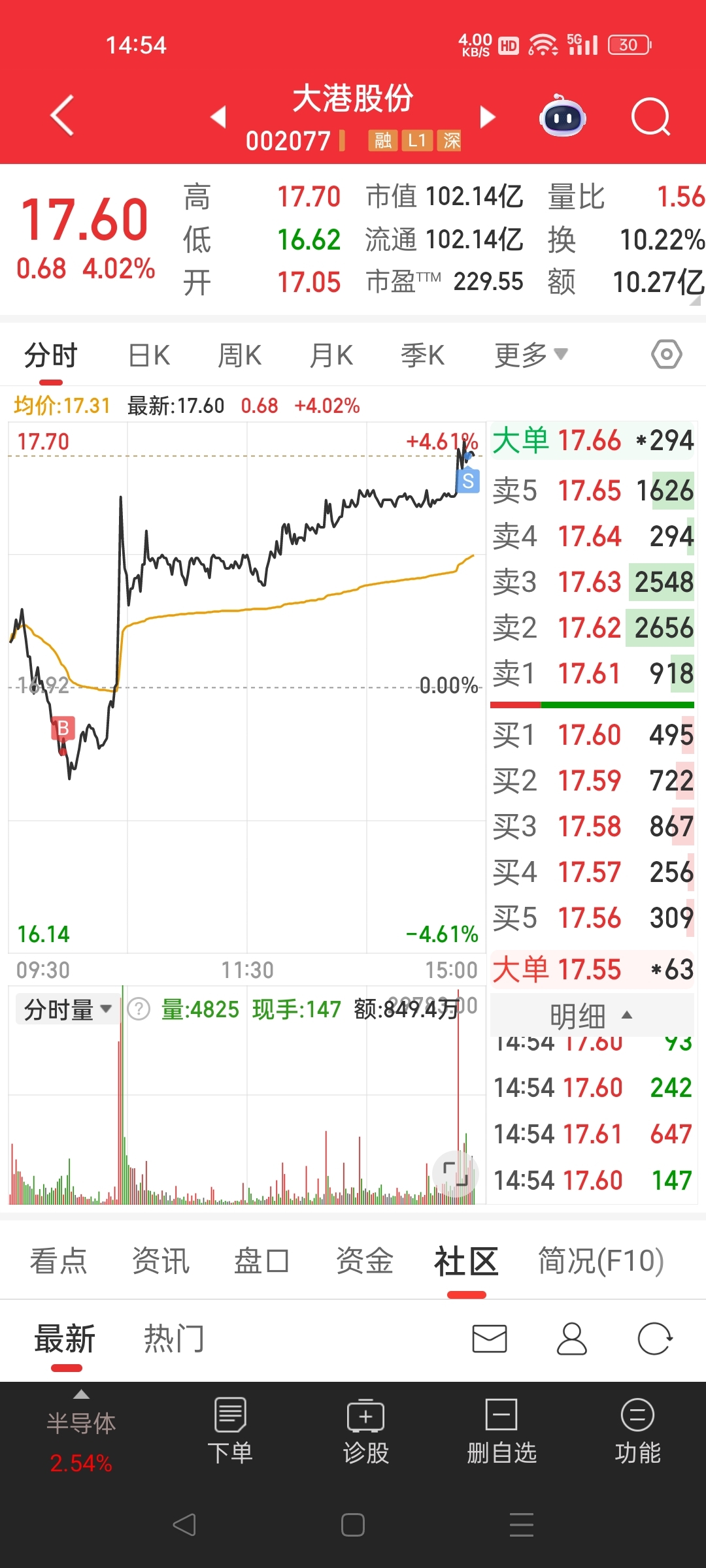 $大港股份(SZ002077)$ 见好就收,明天看跌