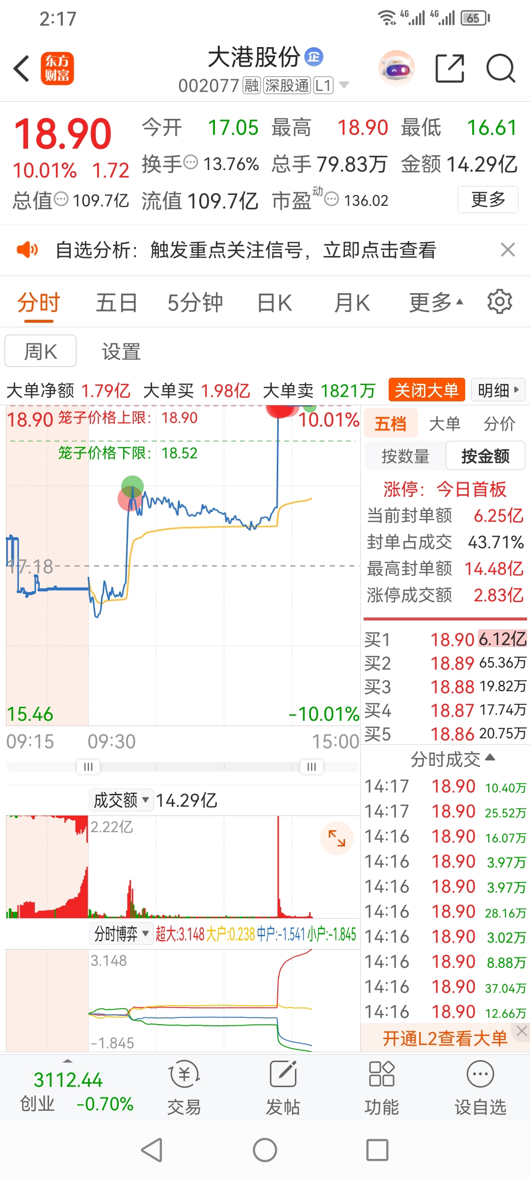 方军今天大港股份,大干一次。