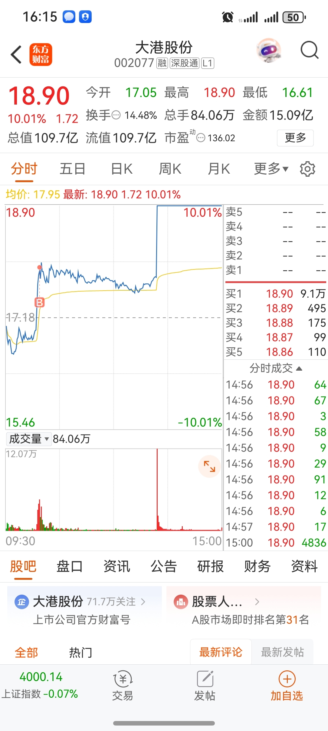 $大港股份(SZ002077)$ 追高了,明天让我先走,我是女生