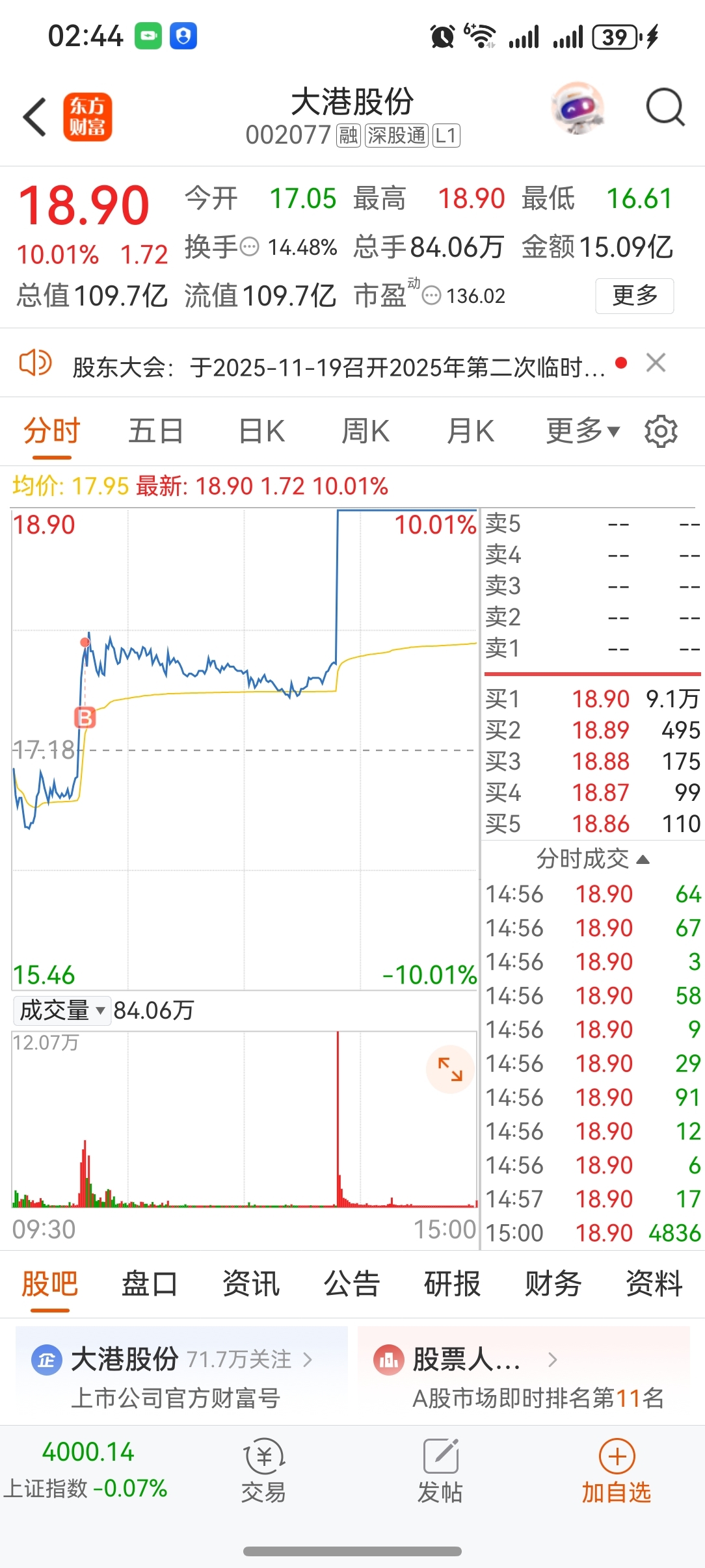 $大港股份(SZ002077)$ 我是女生,明天让我先走