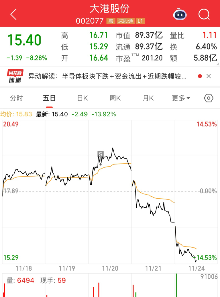$大港股份(SZ002077)$ 还好我跑的够快,要不然得亏死,心疼在里面死扛的家人们。