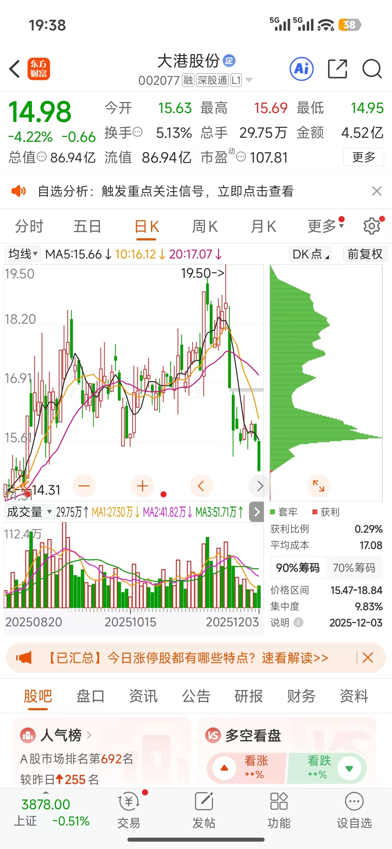 $大港股份(SZ002077)$ 牛逼!获利率不足1%,全部套牢中
