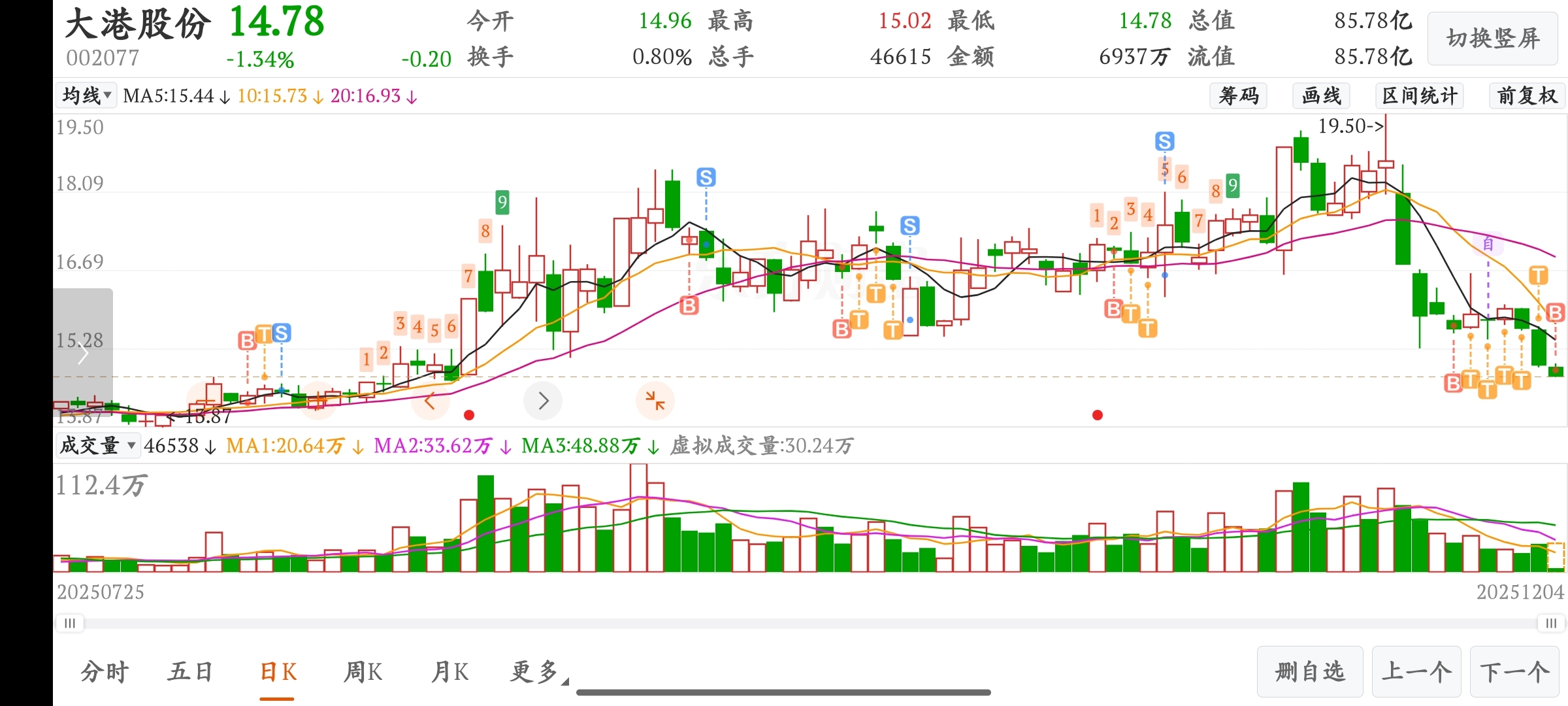 $大港股份(SZ002077)$ 你是如何一步一步往下走的,本想股价往上走,耐何走出反方向