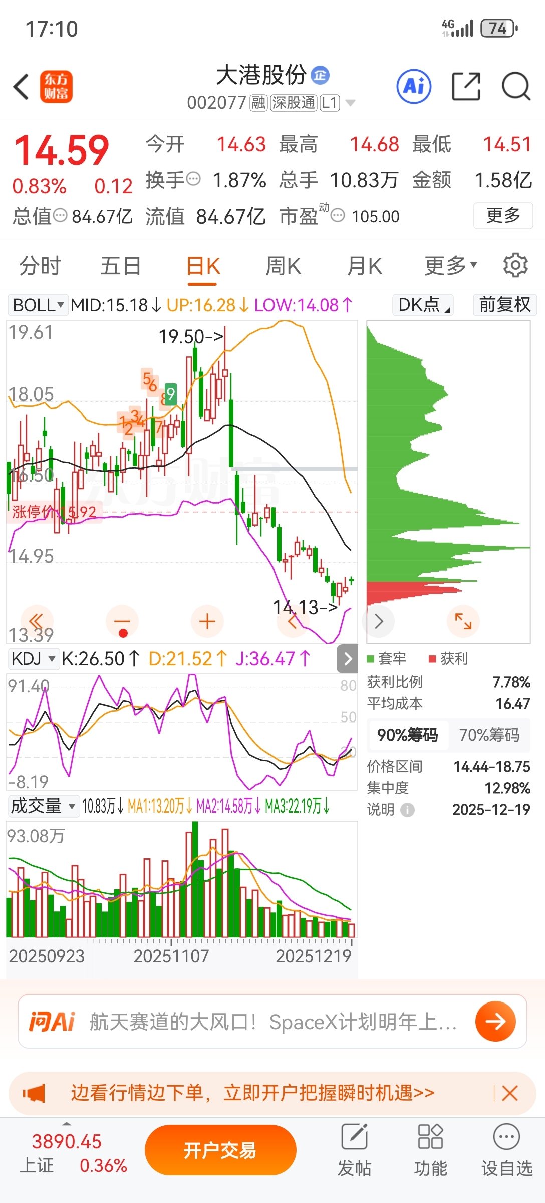 $大港股份(SZ002077)$ 上方筹码峰还这么多,不可能短期拉上去的,上方筹码峰减少五分之四才有可能拉上去