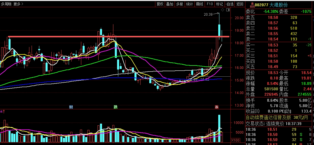 再赌一次大港股份用前面赚的利润梭哈赌一次不贪心赚钱就出大港整体走势属于突破平台趋