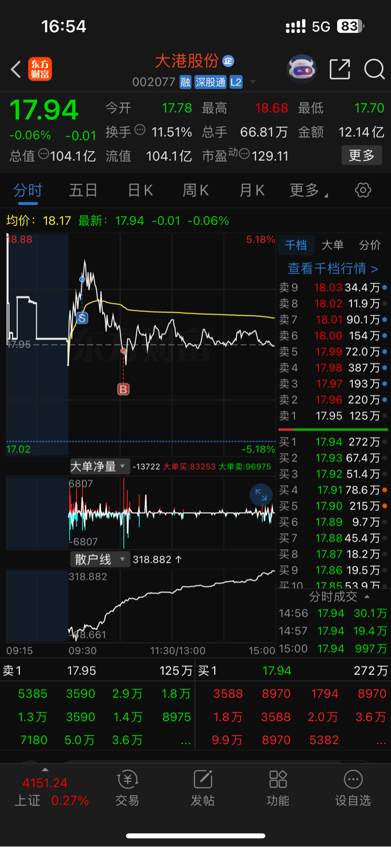 $大港股份(SZ002077)$ 年报预告不管是好,还是不好今天已经消化,这个位置像蓄力,大港这个位置不高,不用怕跟随主力节奏做t降低成本!但是确实今天走的很弱,控制好仓位即可!不突破不加仓!