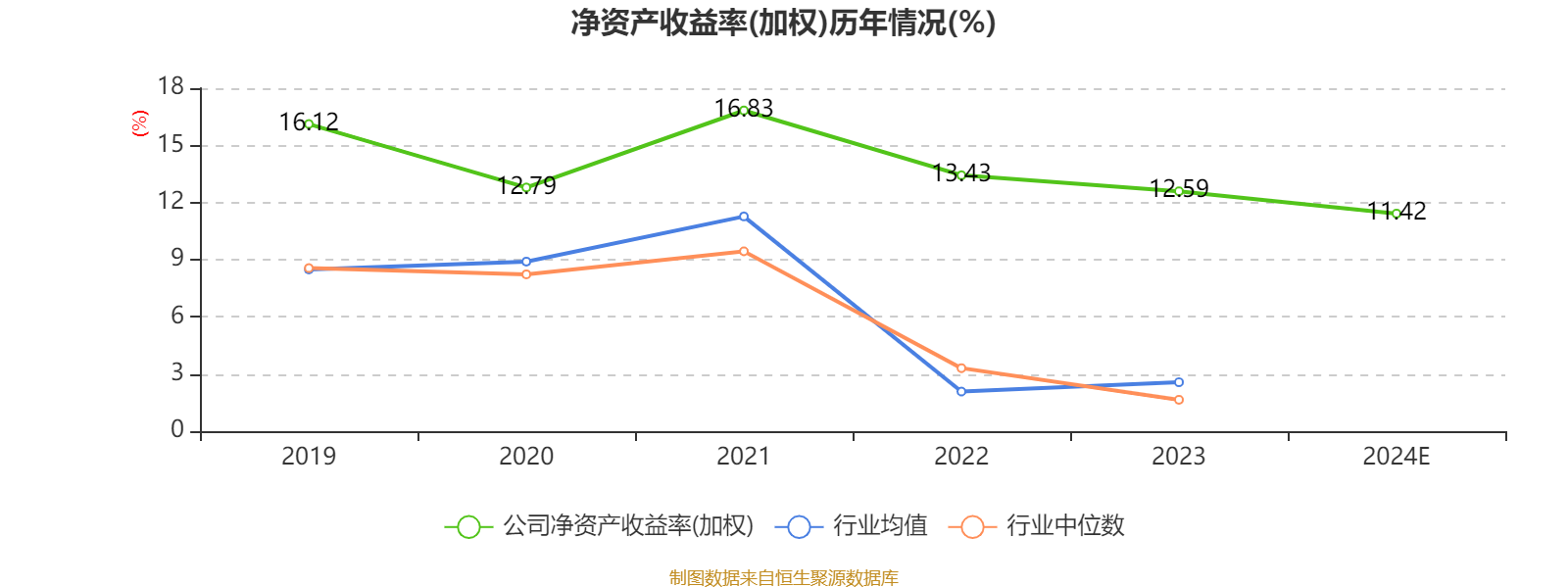 数据显示,2024年公司加权平均净资产收益率为11.42%,较上年同期下降1.17个百分点。