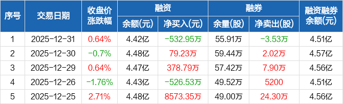 太阳纸业:融资净偿还532.95万元,融资余额4.42亿元(12-31)