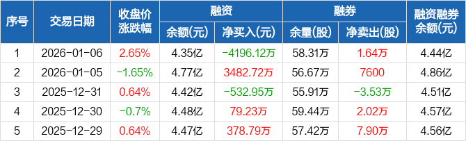 太阳纸业:融资净偿还4196.12万元,融资余额4.35亿元(01-06)