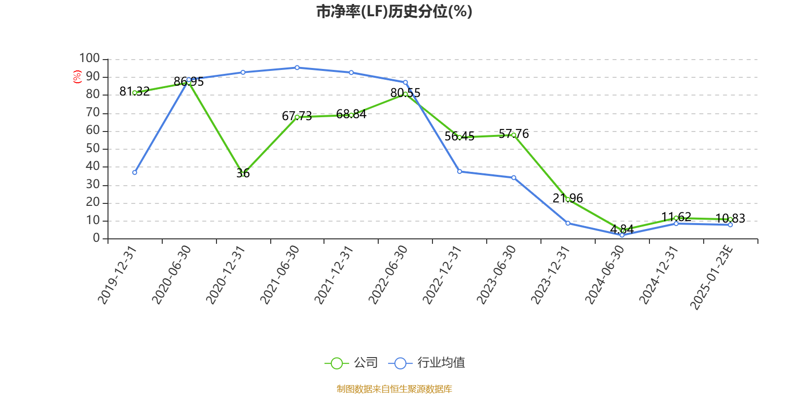市盈率、市净率为负时,不显示当期分位数,会导致折线图中断。