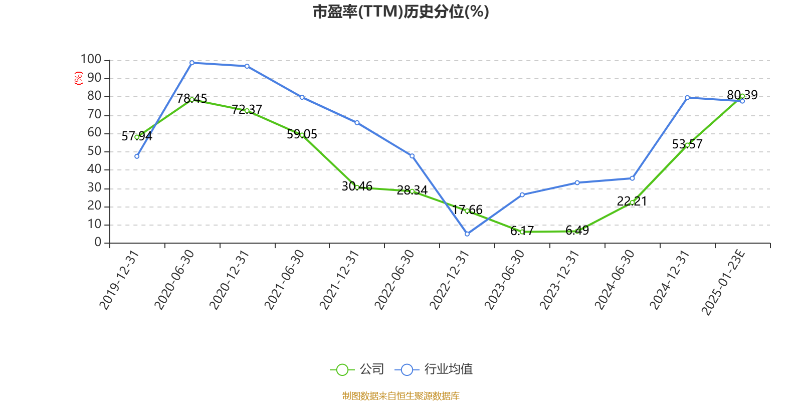 以本次披露业绩预告均值计算,公司近年市盈率(TTM)图如下所示: