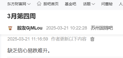 温馨提示: 1.根据《证券法》规定,禁止编造、传播虚假信息或者误导性信息,扰乱证券市场;2.用户在本社区发表的所有资料、言论等仅代表个人观点,与本网站立场无关,不对您构成任何投资建议。用户应基于自己的独立判断,自行决定证券投资并承担相应风险。《东方财富社区管理规定》