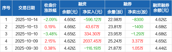 苏州固锝:融资净偿还596.12万元,融资余额4.6亿元(10-14)