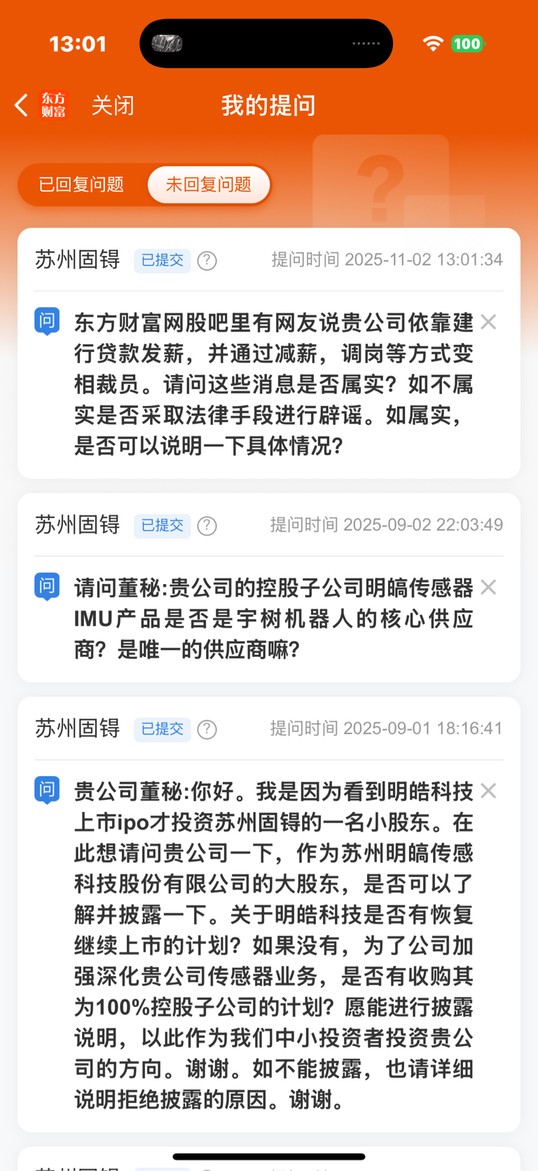 $苏州固锝(SZ002079)$ 提交了很多咨询……董秘一概不答……这工资领的真轻松。这么不把中小股东当回事吗?