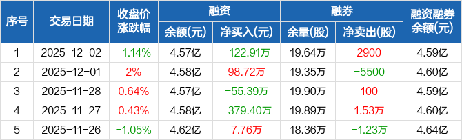 苏州固锝:融资净偿还122.91万元,融资余额4.57亿元(12-02)