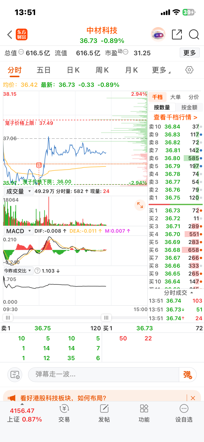 $中材科技(SZ002080)$ 蓄势待发,2点有概率拉一下